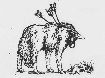 The wolf feels the arrows. It feels the pointed ends sticking into the flesh between her shoulder blades. Damn, how did the hunter find her only soft spot? The tenderest part? The hunter was skilled; the wolf feels the arrowheads stab her sharply with every movement…every lifting of the paw, every crane of the neck. Every movement, a reminder of coming death.