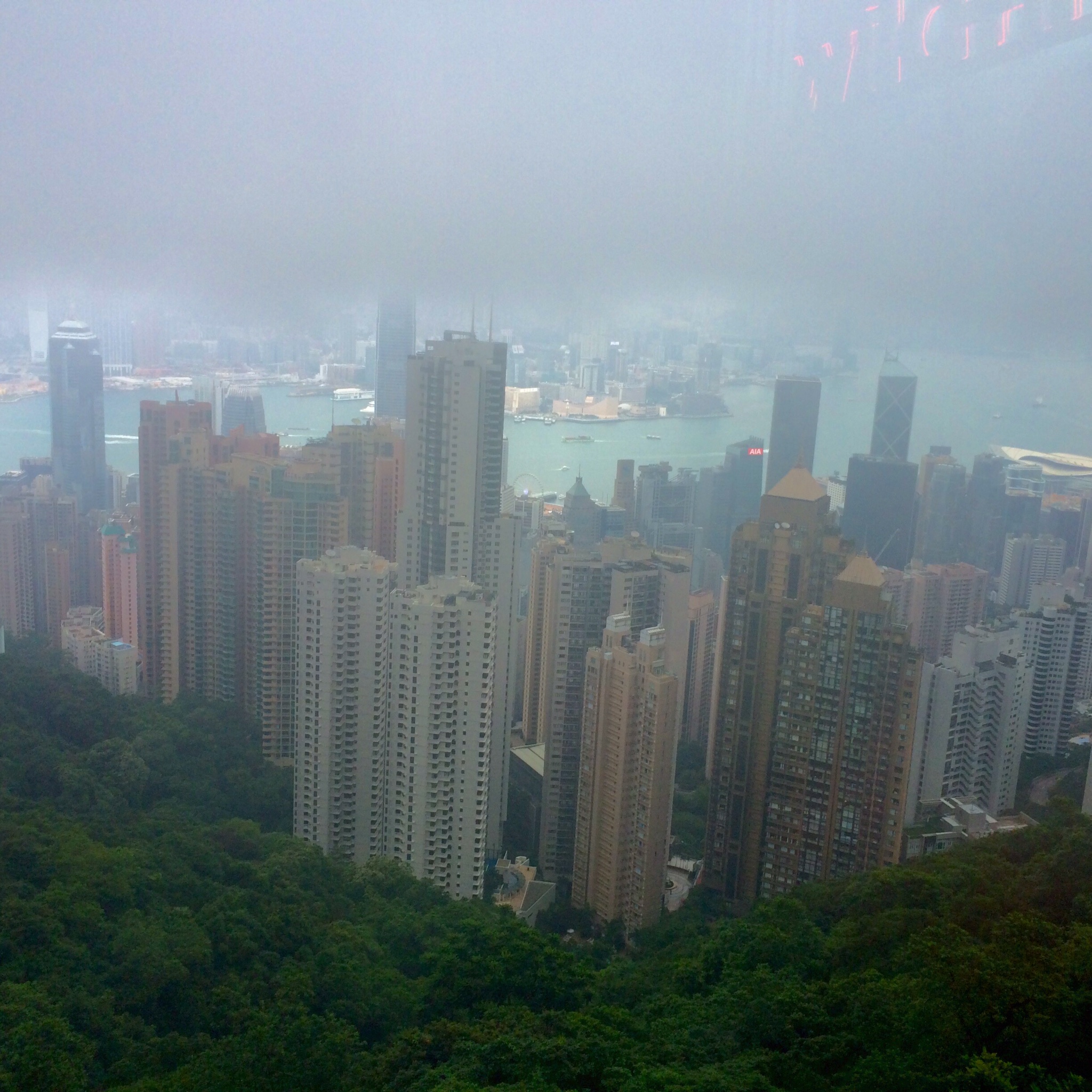 Hong Kong’s highest tourist trap, Victoria Peak, welcomes more than 11,000 visitors every day. My mom and I waited in line for two hours (Sundays are their busiest day, who knew?) and took a tram up the side of the mountain, our ears popping, VIP tickets (83 $HK for access to the Sky Terrace, 428-meters above sea level) in hand.